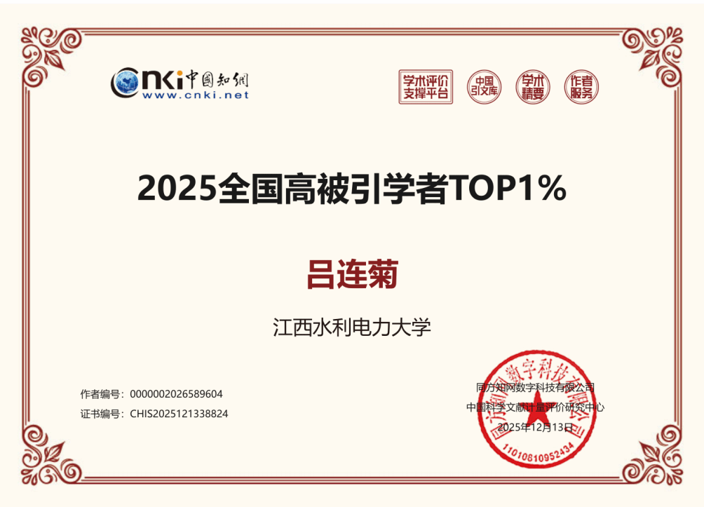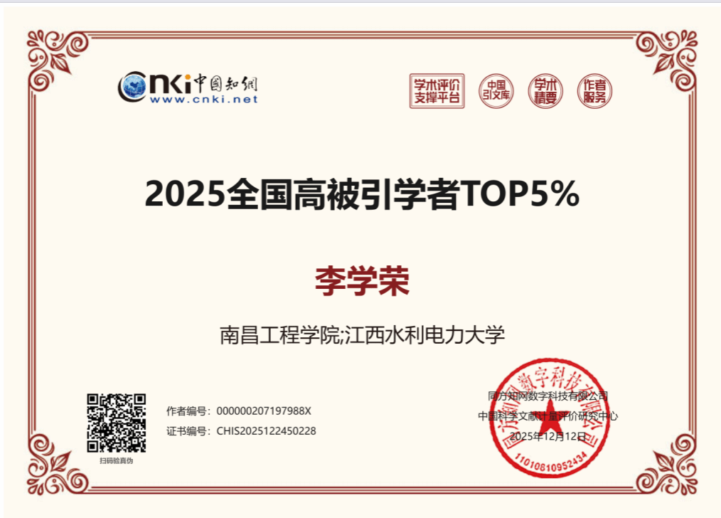 近日,中国知网(CNKI)正式发布2025年全国高被引学者最新入选数据,研究中心共有四位科研人员入选,其中阚大学、吕连菊、赵亮入选全国高被引学者Top1%,李学荣入选全国高被引学者Top5%,充分彰显了研究中心的学术实力与科研影响力。