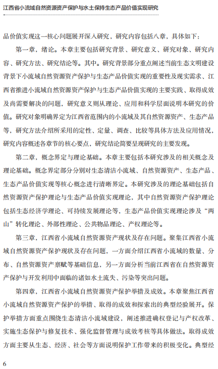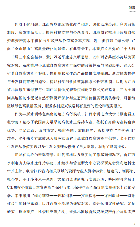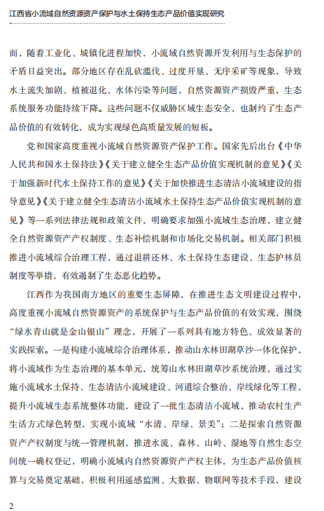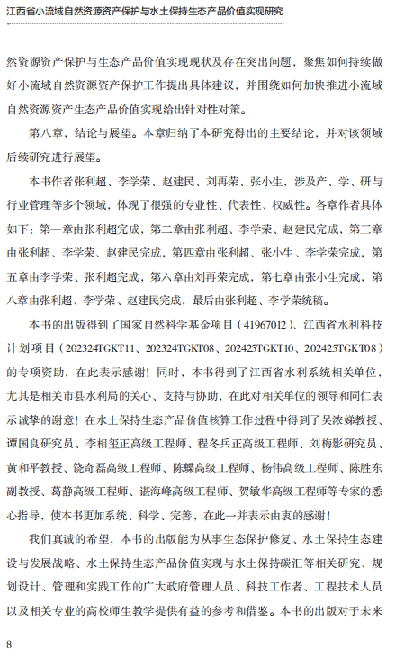 张利超《江西省小流域自然资源资产保护与水土保持生态产品价值实现研究》